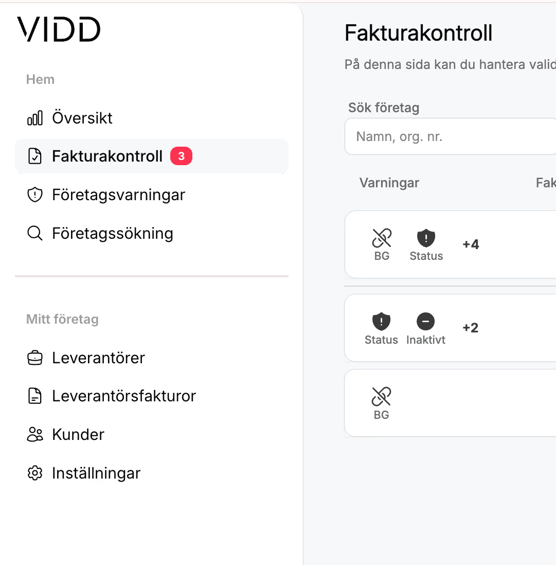 När en Fakturavarning eller Företagsvarning uppstår så blir du notifierad, och kan se mer detaljer på respektive i appen.